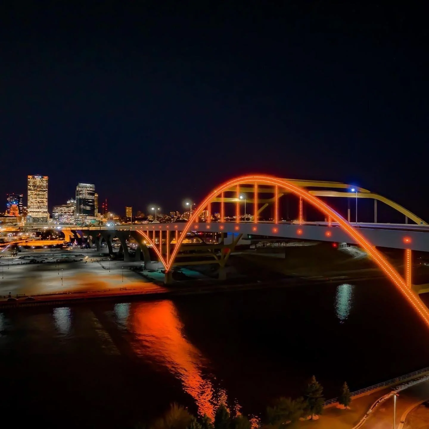 The Hoan all lit up orange with the city scape behind. So beautiful!